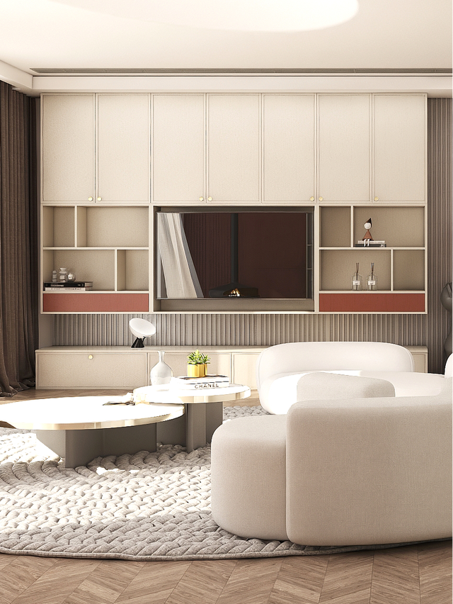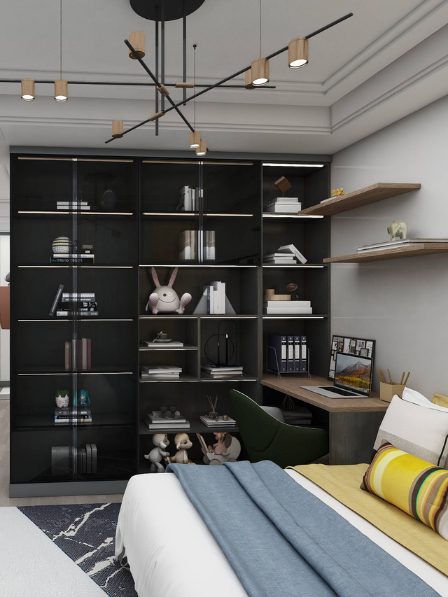 厅柜、餐边柜、橱柜、衣柜、书柜、卫浴柜、衣帽间等空间硬装产品均是全屋定制的范畴,要是家里有人运动或喜欢养宠物还可以专门设计健身房或宠物区;而茶几、沙发等可移动的软装设施不属于全屋定制。